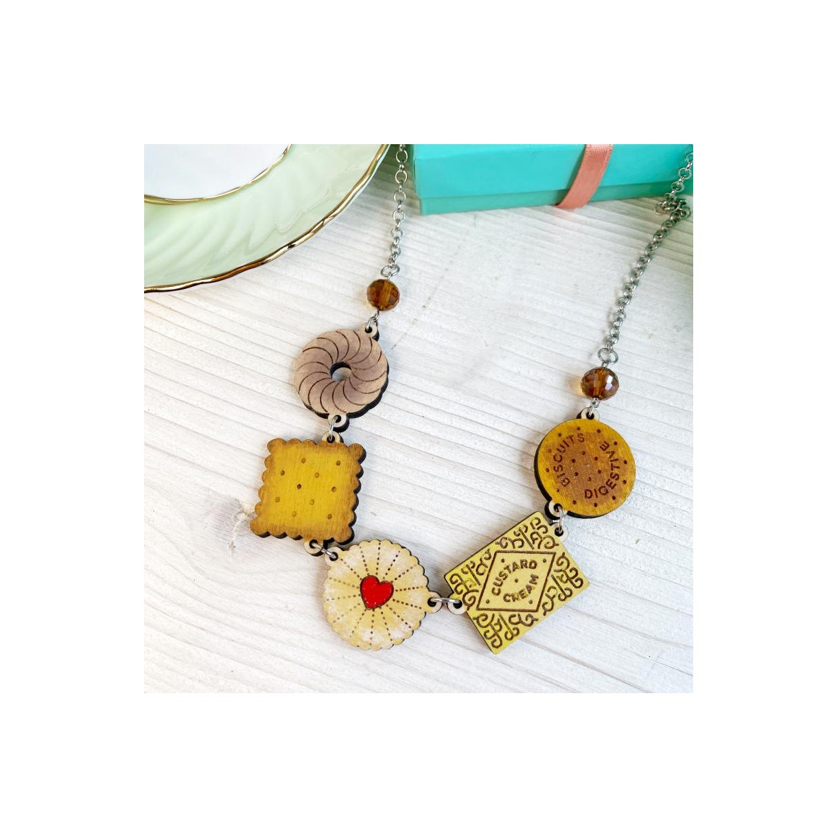 Dipinte con grandissima attenzione ai dettagli con cura artigianale nel nostro studio ed ispirate al rito dell'ora del tè e ai biscotti inglesi più famosi: digestive, custard cream, jammie dodgers e i biscotti secchi. Le collane artigianali di nostra ideazione sono introvabili altrove e perfette per un dono davvero originale! Catena in metallo anallergico privo di nichel, regolabile a 4 posizioni. Leggerissima da indossare! Dimensioni 45 cm (girocollo modello Princess). Colorata totalmente a mano con colori e vernici a base d'acqua ed infinita, amorosa pazienza, per ricreare le sfumature tipiche dello stile Daffodil. Perfetta da abbinare agli altri gioielli dello stesso design. Ecosostenibile perché totalmente riciclabile, il retro è sempre privo di vernici, per un contatto naturale con il legno. Tagliata a laser con tecnologie nuovissime, ma disegnata su carta con passione nel nostro studio lab. Design originale Daffodil, dalla collezione in edizione limitata Light Wood.Ogni collana viene confezionata con un cartoncino con un messaggio speciale con una breve frase poetica. Se desideri scegliere il tuo messaggio contattaci dopo l'acquisto per avere l'elenco delle frasi fra cui puoi scegliere.