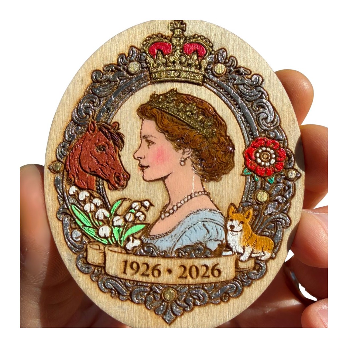 La spilla contiene tutte le passioni della Regina: i cavalli, i suoi amati cani Corgi, la corona, la rosa inglese classica e naturalmente il suo profilo con un abito color pastello. Il mughetto è noto per essere stato uno dei fiori preferiti della Regina Elisabetta II, presente nel suo bouquet di incoronazione nel 1953. Questo fiore delicato e profumato, simbolo di felicità e buona fortuna, ha avuto un posto speciale nel cuore della sovrana, spesso associato a momenti classici e romantici della Royal Family.