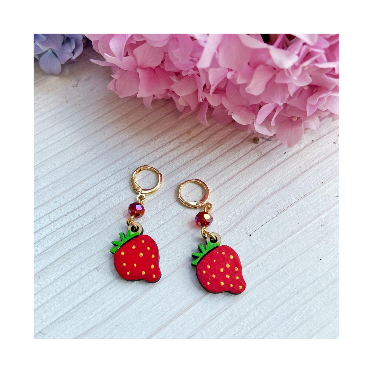 Per un pensierino gli orecchini in legno con le fragole sono un dono sicuramente gradito.